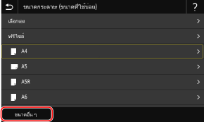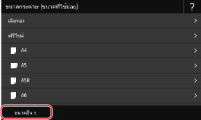 หากขนาดกระดาษของกระดาษที่ใส่ไว้ไม่แสดงขึ้นมา ให้เลือก <ขนาดอื่น ๆ>