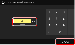 เปลี่ยนแปลงระยะเวลาในการเก็บรักษาเอกสารที่มีการรักษาความปลอดภัยไว้ในหน่วยความจำ แล้วกด <นำไปใช้> (
