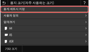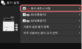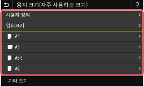 자주 사용하는 용지 크기가 미리 설정되어 있습니다. 용지를 적재할 때 용지 크기를 설정하려면 아래 단계를 따르십시오.