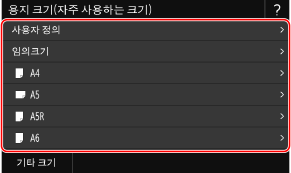 적재된 용지 크기가 표시되지 않는 경우 <기타 크기>를 선택합니다.
