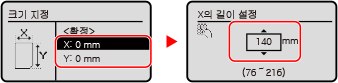 <X> 면과 <Y> 면의 길이를 지정합니다.