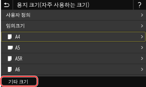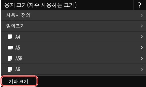 적재된 용지 크기가 표시되지 않는 경우 <기타 크기>를 선택합니다.