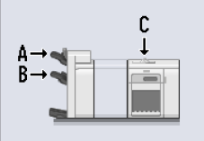 大量積載モードを「ON」にすると、排出先トレイの順序を固定することができます。例えばステイプルフィニッシャー・AFのトレイA/トレイBに排紙する場合、大量積載モードを「ON」にすると、まずトレイBから積載され、満載になると今度はトレイAに積載されます。フィニッシャーから大量にジョブを出力するときは、大量積載モードを「ON」にして積載力の高いトレイBを優先的に利用すると生産性を向上させることができます。大量積載モードの詳細については、下記を参照してください。