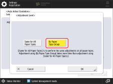 Press [Adjustment Level] → [By Paper Type Group] → [OK].