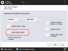 Confirm that [Standard] (for the recommended paper) or "the paper for calibration that you loaded in step 1" is selected for [Select Paper to Adjust].