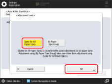 Press [Adjustment Level] → [Same for All Paper Types] → [OK].