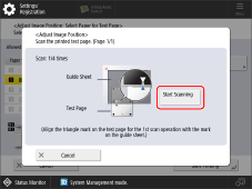 on the test page for the fourth scan operation with the mark on the guide sheet → press [Start Scanning].