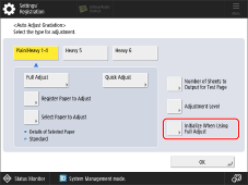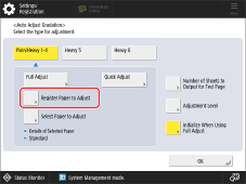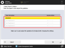 → [Adjustment/Maintenance] → [Adjust Image Quality] → [Auto Adjust Gradation] to select the paper.