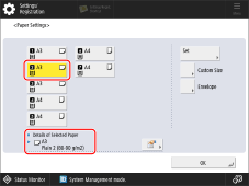 Select the paper drawer in which the paper you registered as paper for calibration has been loaded as the paper source that is loaded with custom paper to be used as the paper type to adjust.