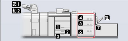 As the machine starts printing, paper is fed from the upper drawer of the Multi-drawer Paper Deck-E. After the paper source changes, follow the procedure below.