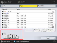 The paper source in use is highlighted in yellow on the image which is in the lower left corner of the screen.