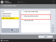 Sélectionner le papier à corriger, puis appuyer sur [Réinitialiser si Réglage complet utilisé].