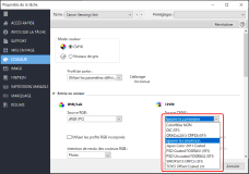 Pour modifier un réglage d'étalonnage, sélectionner le profil de sortie associé au réglage désiré sous [Profil de sortie].