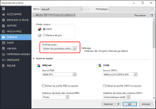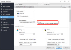 Si [Ignorer la conversion] sous [Source CMYK] est sélectionné, le profil de sortie n'est pas utilisé. Seul un réglage d'étalonnage associé au profil de sortie sélectionné est appliqué.