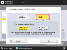 → [Regolazione/Manutenzione] → [Regolazione qualità immagine] → [Impostazioni di stampa di tipi di carta misti] → selezionare [Priorità qualità immagine].