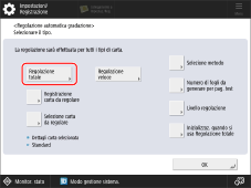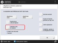 Confermare che [Standard] (per la carta consigliata) o per "la carta per la calibrazione caricata nel passaggio 1" sia selezionato per [Selezione carta da regolare].