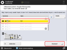 Wählen Sie die Papierzufuhr mit dem verwendeten Papier aus → Berühren Sie die Taste [Druckstart].