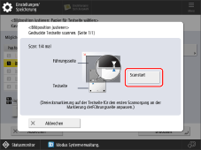 -Markierung auf der Testseite für einen zweiten Scanvorgang an der Markierung auf dem Führungsblatt aus → berühren Sie die Taste [Scanstart].
