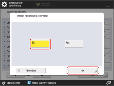 Diese Funktion wird nur angezeigt, wenn die Einstellungen von Ihrem örtlichen Canon-Vertragshändler freigeschaltet wurden. Auch wenn diese Funktion angezeigt wird, darf außer dem Systemverwalter niemand die Einstellungen ändern. Weitere Informationen zum Ändern der Einstellungen erhalten Sie von Ihrem Canon-Vertragshändler.