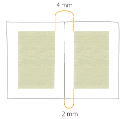 Wenn Sie <In der Mitte> für <Zentrierung anpassen> auswählen und "4,0" (mm) für <Bundsteg vergrößern um> einstellen