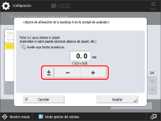 → [Ajuste/Mantenimiento] → [Acción de ajuste] → [Ajuste alineación bandeja A unidad de acab.] o [Ajuste alineación bandeja B unidad de acab.].