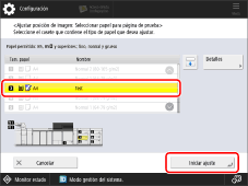 Seleccione la ubicación del papel que desea ajustar y, a continuación, pulse [Iniciar ajuste].