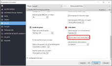 Seleccione la ficha [COLOR], y después seleccione la casilla para [Coincidencia de colores planos].