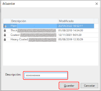 Introduzca una descripción fácil de entender en <Descripción> para que pueda saber fácilmente la diferencia entre los perfiles, y después haga clic en [Guardar].