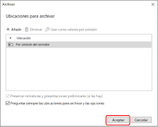 Especifique la ubicación de almacenamiento, si es necesario, y haga clic en [Aceptar].