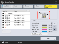 As the machine starts printing, paper is fed from the upper drawer of the POD Deck Lite-C. After the paper source changes, follow the procedure below.