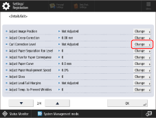 *2: When you perform two-sided printing, pressing <-> or <+> for <Face Down Output (Normal)> does not work for the adjustment of the curl correction level.
