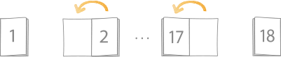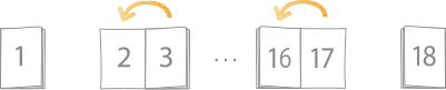 Confirm the settings for <Back cover> as well as the settings for <Front cover>. For example, if you set [Print on outside] for both <Back cover> and <Front cover>, and print a job that has a total of 18 pages, the pages are printed as shown below.