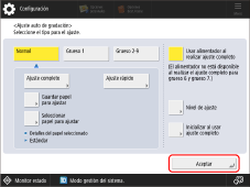 → <Preferencias> → <Opciones de papel> → <Opciones de gestión de tipos de papel> → seleccione el tipo de papel que está utilizando y que tiene este problema → pulse <Detalles/Editar> → <Cambiar> para <Modo reducción cant. tóner> → seleccione <Sí>.