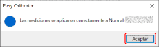 Después de que se muestre "Las mediciones se aplicaron correctamente a ...", haga clic en [Aceptar].