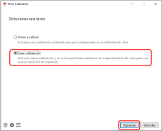 Seleccione [Crear calibración] y, a continuación, haga clic en [Siguiente].
