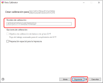 Introduzca un nombre de calibración en [Nombre de calibración] y, a continuación, haga clic en [Siguiente].
