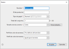 Guarde los atributos del papel en el que desea imprimir en el imagePRESS Server.