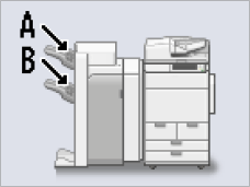 Selon le module de finition que vous utilisez, il peut présenter trois réceptacles de papier. Dans ce cas, la capacité de chargement du papier augmente dans l'ordre suivant : réceptacle A, réceptacle B et réceptacle C.