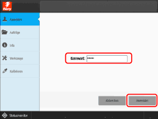 Geben Sie das Passwort ein → Berühren Sie die Taste [Anmelden].