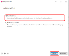 Wählen Sie [Nachkalibrieren] und klicken Sie anschließend auf [Weiter].