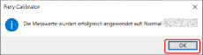Wenn "Die Messwerte wurden erfolgreich angewendet auf ..." eingeblendet wird, klicken Sie auf [OK].