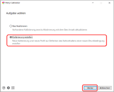 Wählen Sie [Kalibrierung erstellen] und klicken Sie anschließend auf [Weiter].