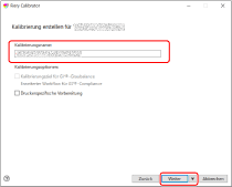 Geben Sie in [Kalibrierungsname] einen Kalibrierungsnamen ein und klicken Sie dann auf [Weiter].