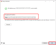 Verknüpfen Sie die Kalibrierungseinstellung mit dem Ausgabeprofil und klicken Sie auf [OK].
