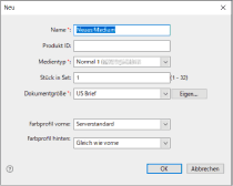 Geben Sie einen Namen, die Sorte und das Format des Papiers ein und wählen Sie anschließend das Ausgabeprofil, dass Sie in Schritt 11 einrichten als [Farbprofil vorne] aus.