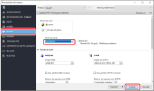 Seleccione la ficha [COLOR], seleccione el perfil personalizado creado para el [Perfil de salida] y, a continuación, haga clic en [Aceptar].