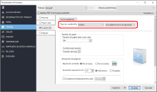 Seleccione la casilla para <compensar desplazamiento para>, y después seleccione un tipo de papel de la lista desplegable.