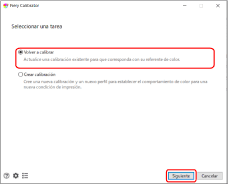 Seleccione [Volver a calibrar] y, a continuación, haga clic en [Siguiente].