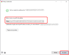 Vincule el ajuste de calibración con el perfil de salida y haga clic en [Aceptar].