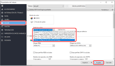 Seleccione la ficha [COLOR], seleccione cualquier perfil de salida en [Perfil de salida] y, a continuación, haga clic en [Aceptar].